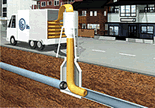 | INS工法は老朽化した埋設管に、熱硬化性樹脂を含浸したライナーを水頭圧により反転挿入し、管内水を加熱してライナーバックを管内に圧着硬化させることで全く新しい管を既設内に作り出します。 |