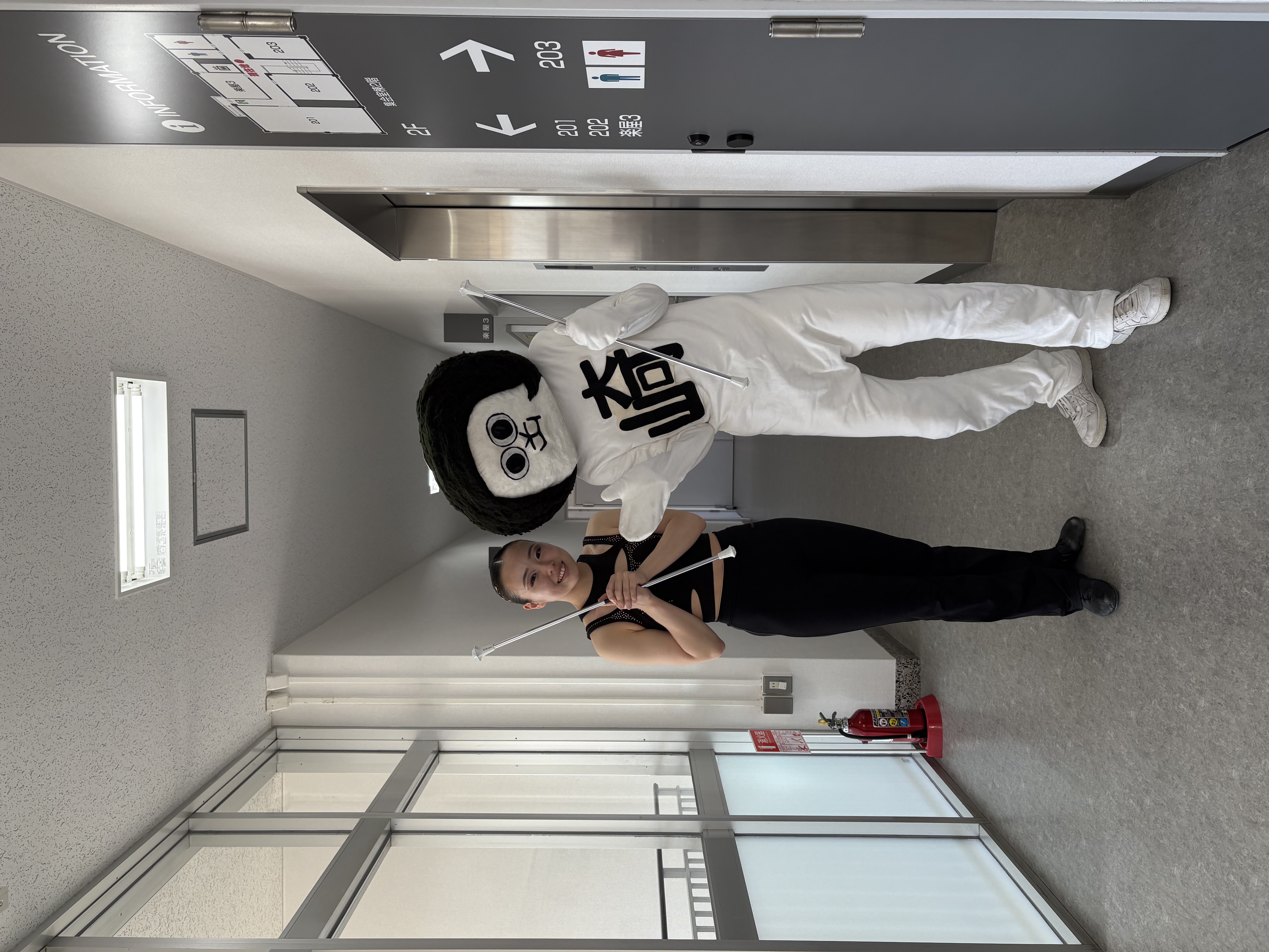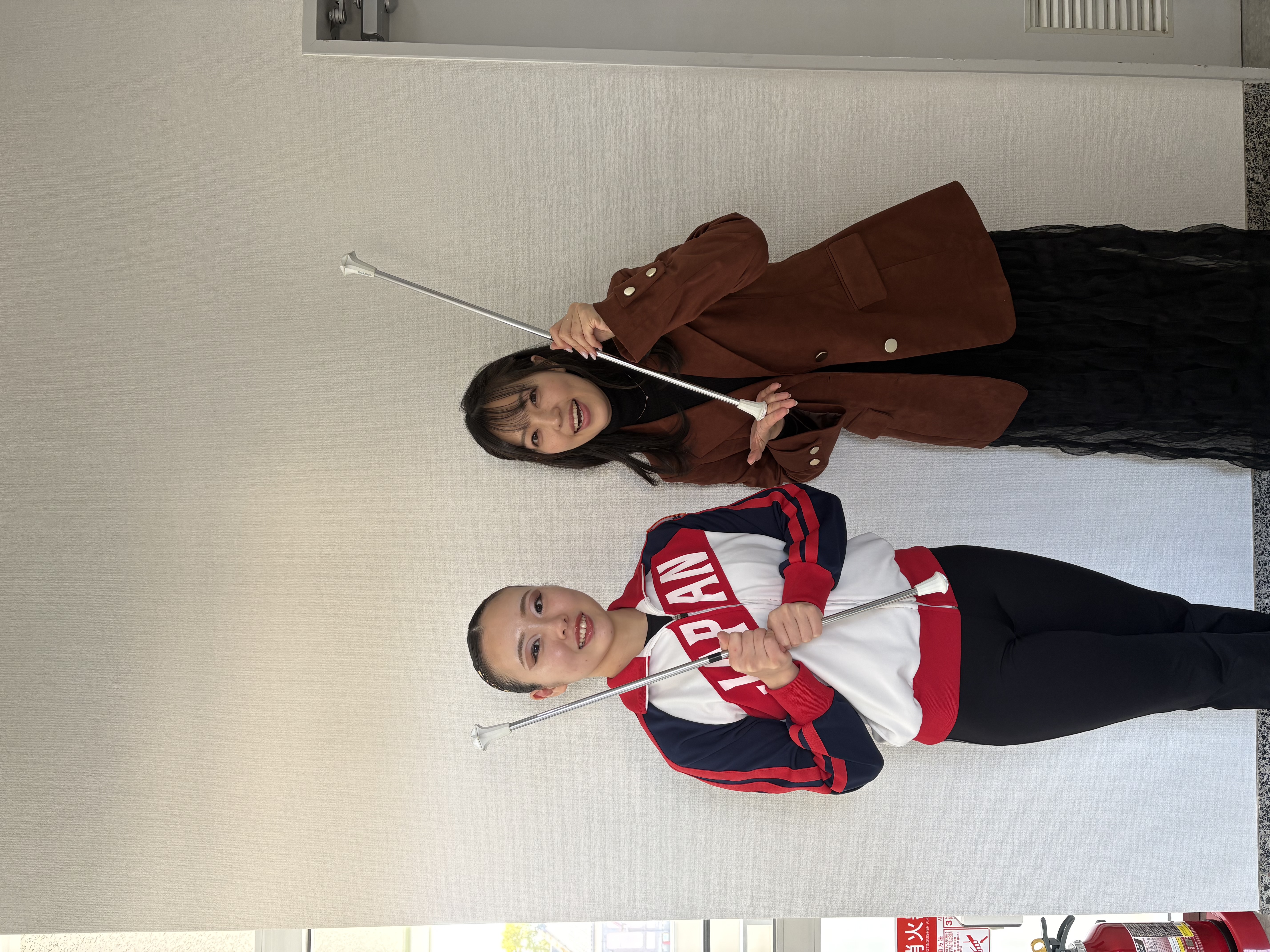 バトンを回しながらタイトルコールを撮影していただきました。