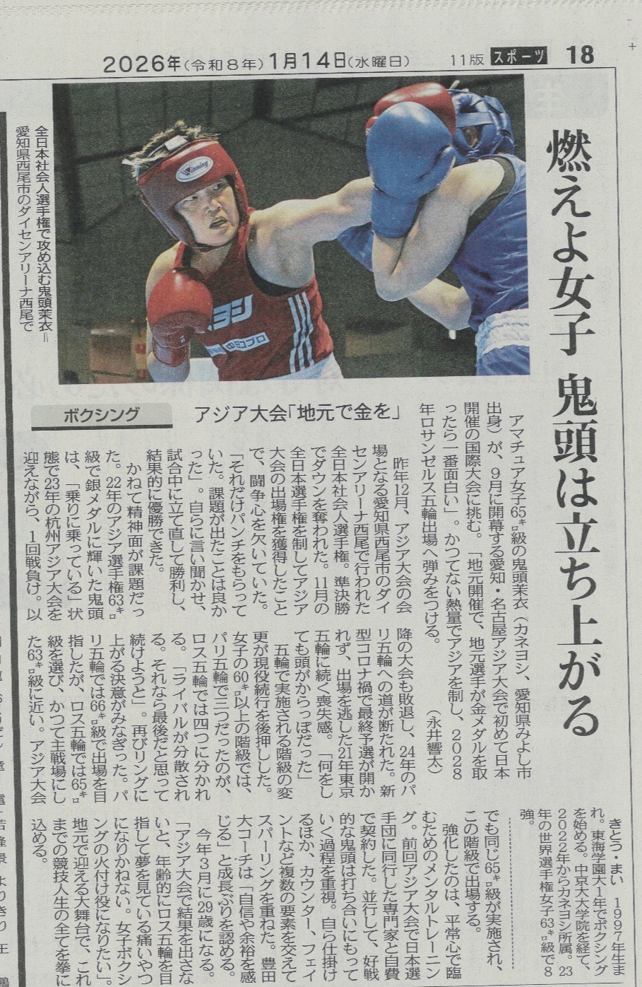 【ボクシング】中日新聞掲載のお知らせ