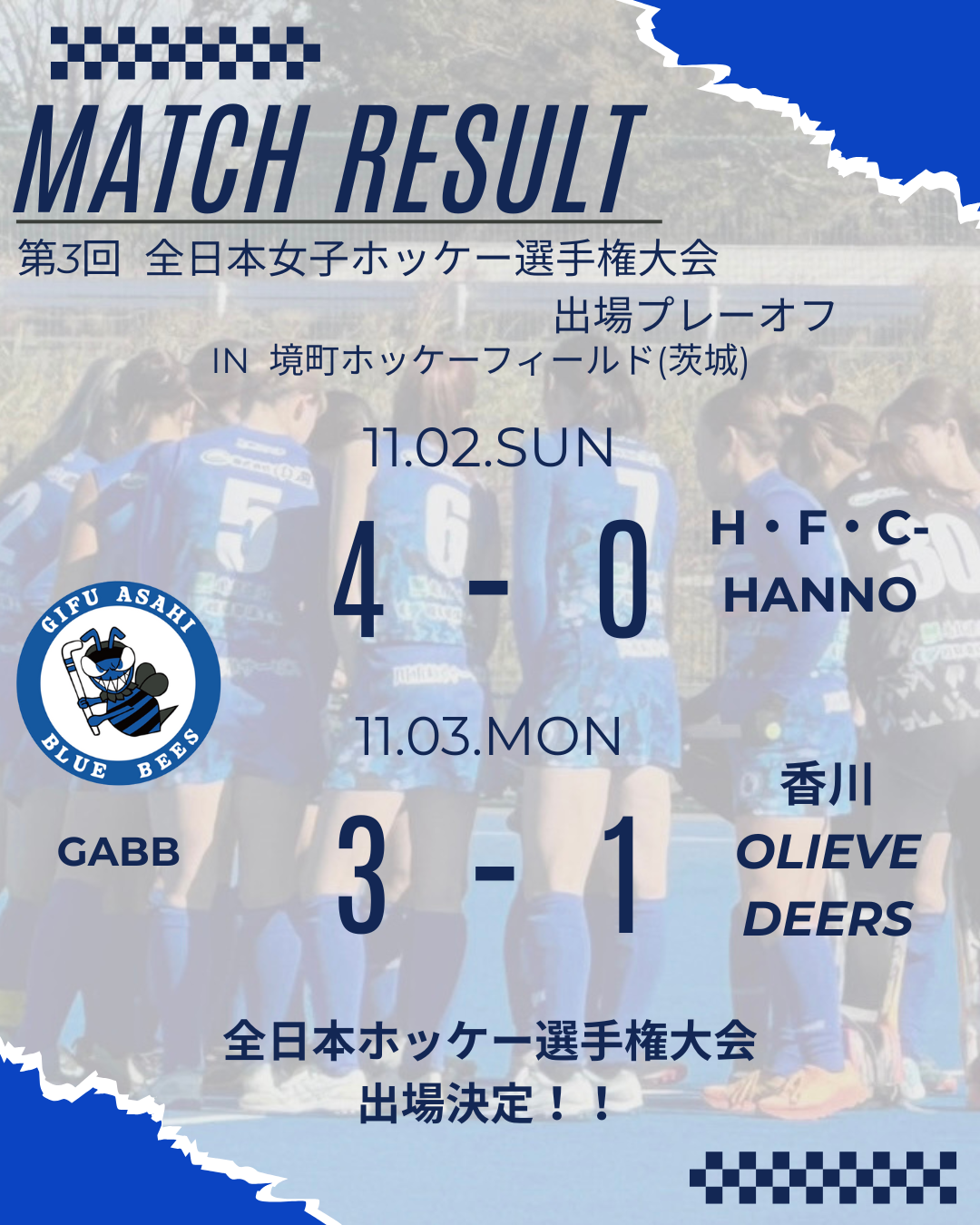 そして、第86回全日本女子ホッケー選手権大会の出場権を獲得しました!