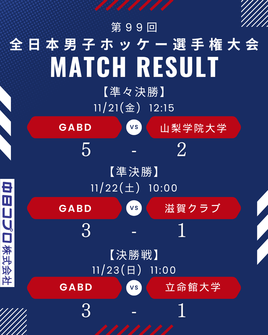 11月21日(金)〜23日(日)まで東京/大井ホッケー場で【第99回 全日本男子ホッケー選手権大会】が開催されました。