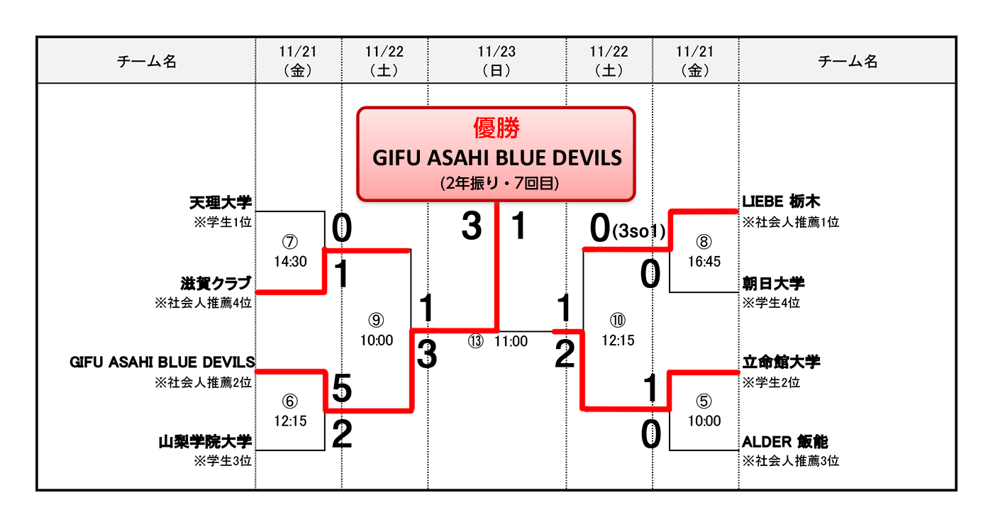 GABDは1回戦で山梨学院大学(学生3位)に、準決勝で滋賀クラブ(社会人推薦4位)に勝利し、3年連続での決勝戦進出となりました。