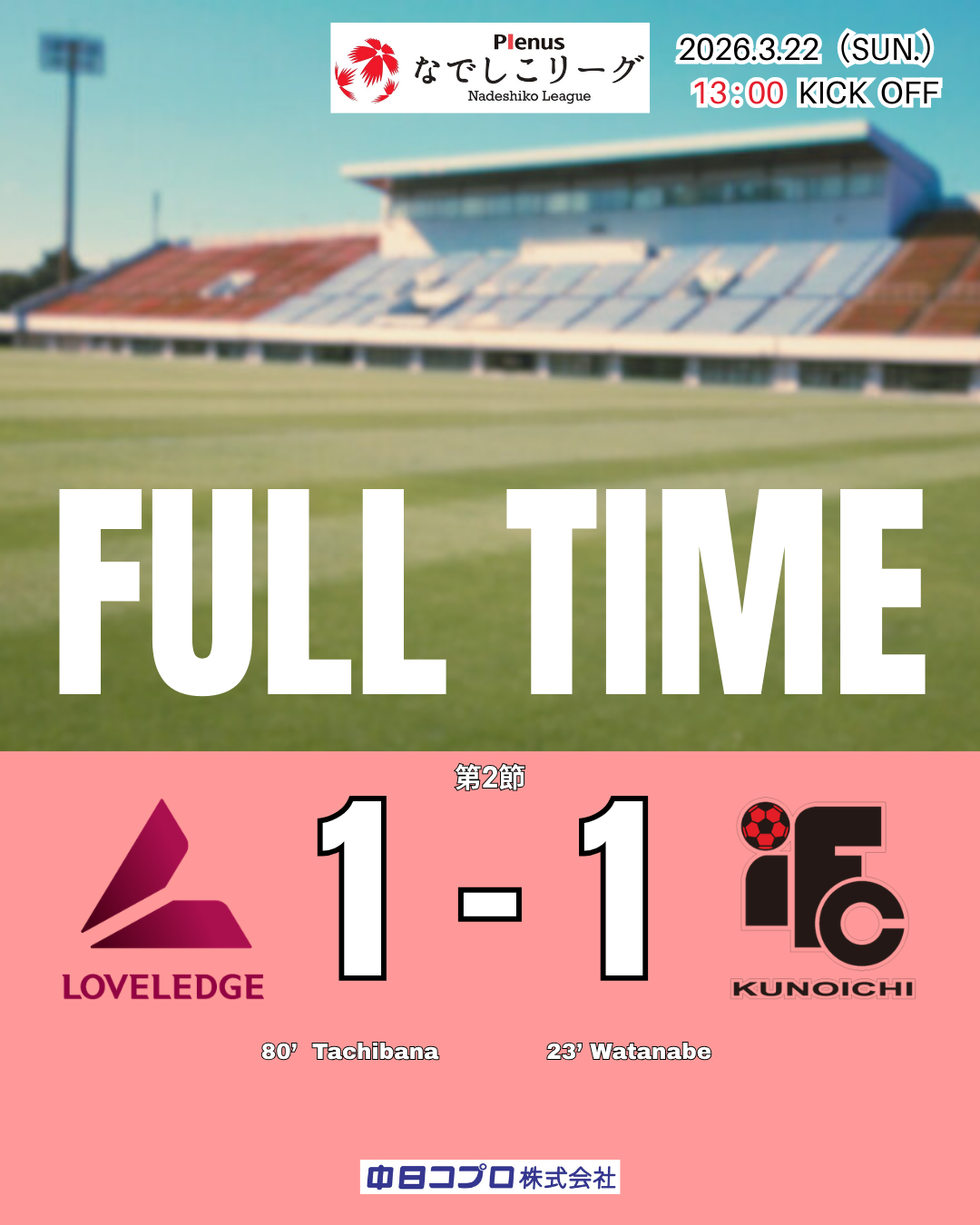 2026プレナスなでしこリーグ1部の第2節が3/22に開催されました!