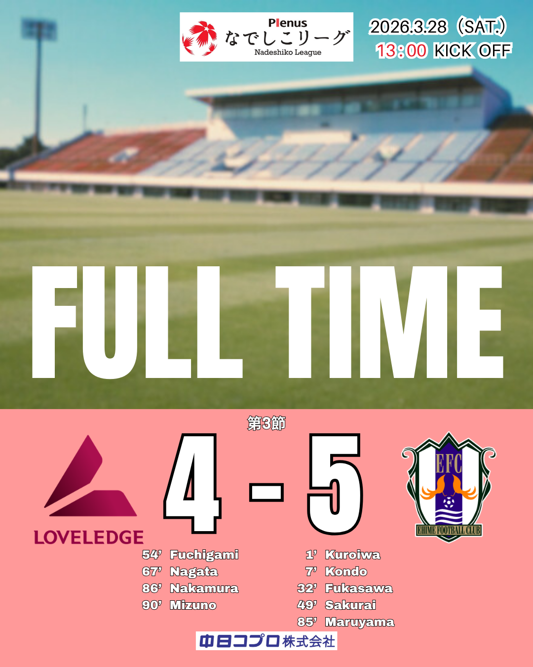 2026プレナスなでしこリーグ1部の第3節が3/28に開催されました!