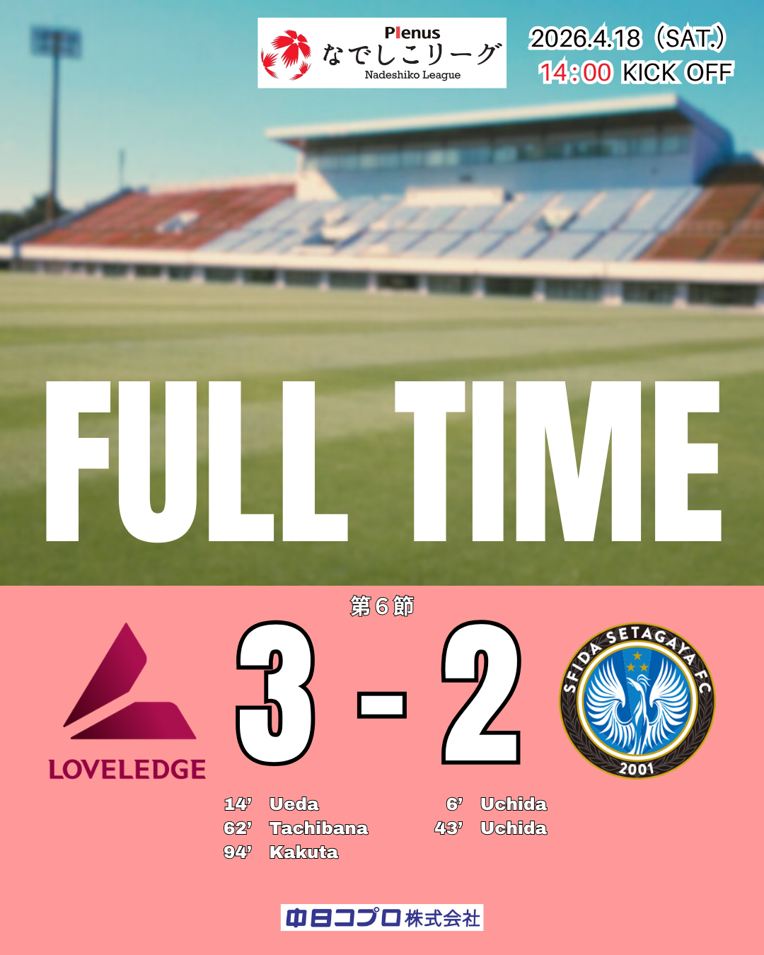 2026プレナスなでしこリーグ1部の第6節が4/18に開催されました!