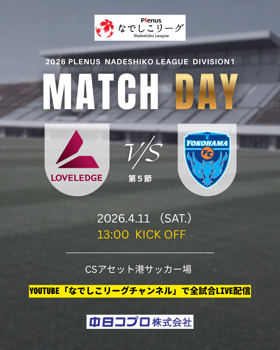 4月11日(土)に、2026プレナスなでしこリーグ1部の第5節が開催されます!