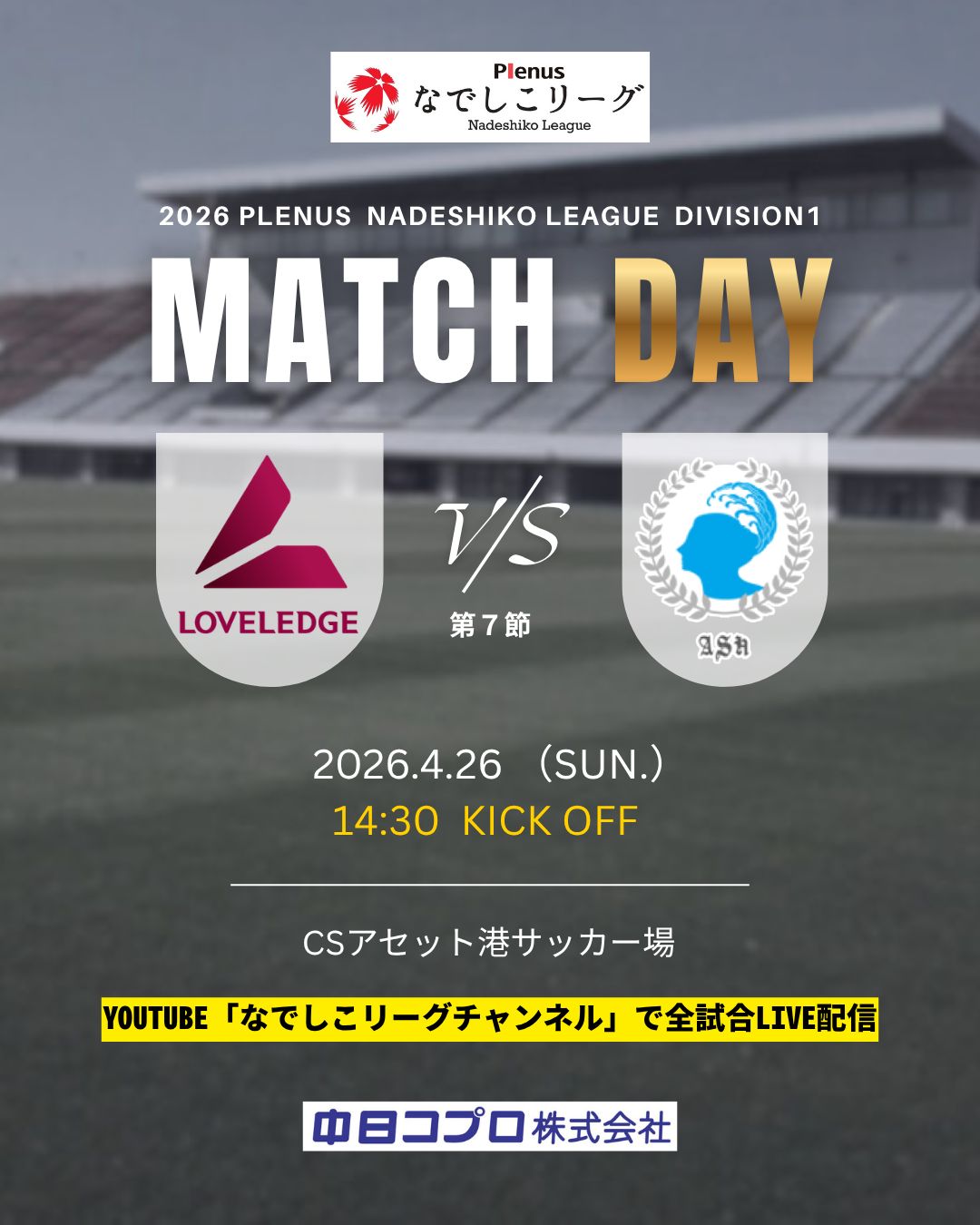 4月26日(日)に、2026プレナスなでしこリーグ1部の第7節が開催されます!