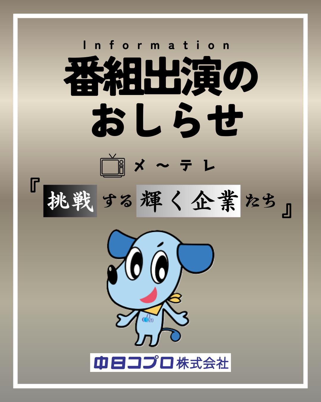メ〜テレ【挑戦する輝く企業たち】出演告知