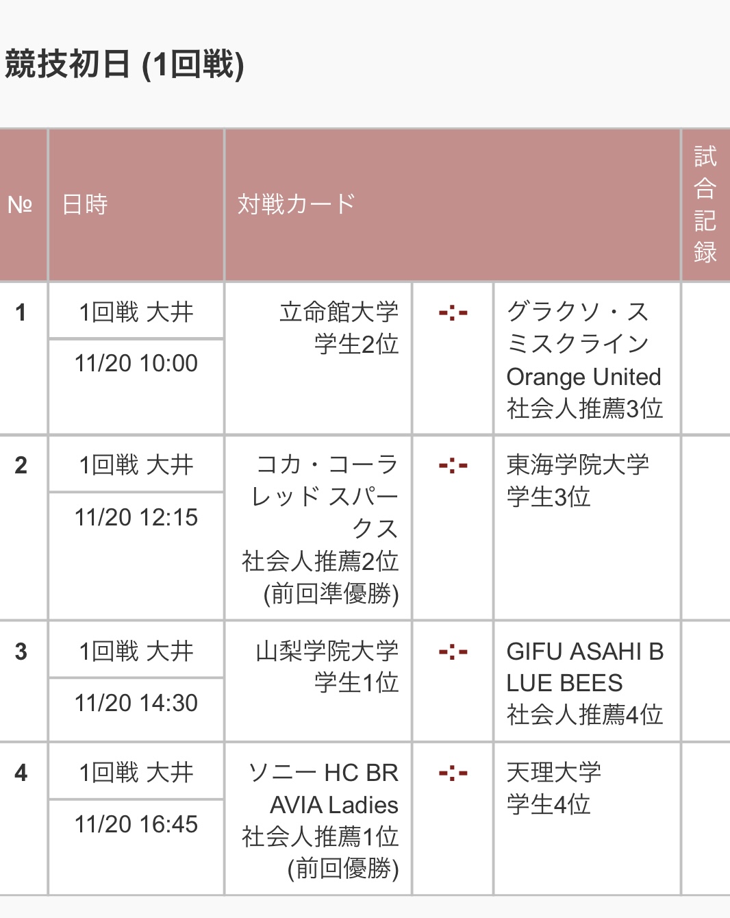 20日、勝利した場合は、22日に準決勝が行われ、コカ・コーラレッドスパークスvs東海学院大学の勝者と対戦します。