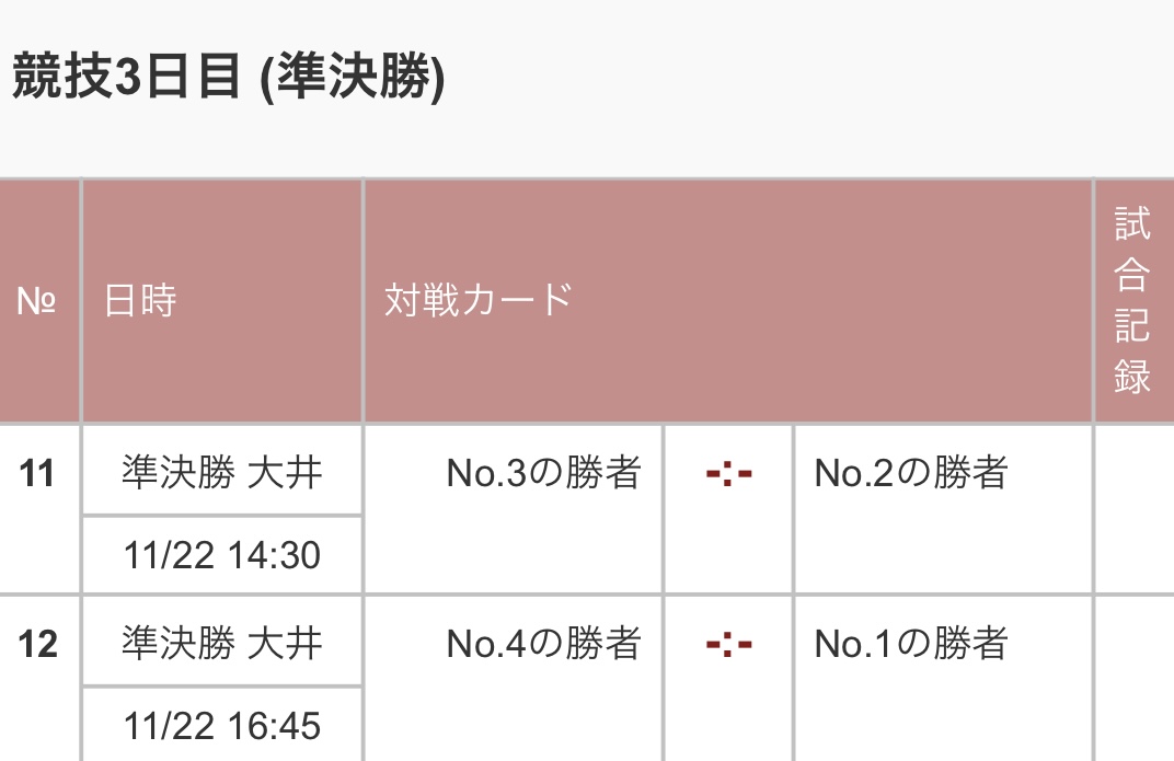 試合日程は以下の通りです。