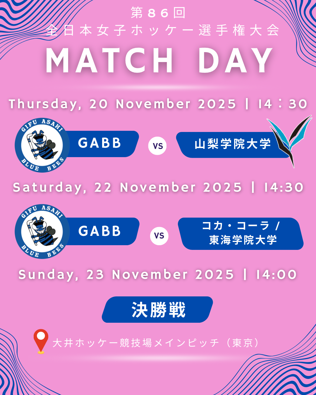 GABBはプレーオフで1枠を獲得したので、社会人4位として出場し、学生の1位である山梨学院大学と対戦します!