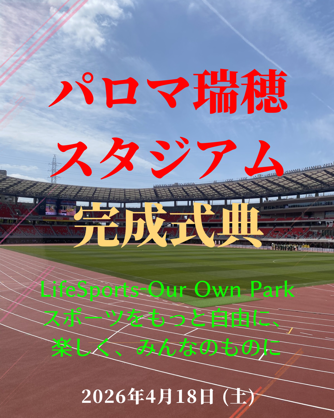 「LifeSports- Our Own Parkスポーツをもっと自由に、楽しく、みんなのものに」をコンセプトに、陸上競技・サッカー・ラグビー・アメフトなど多様な競技・大会の舞台となり熱狂や感動を生み出すとともに、平常時は市民に開放された運動と憩いのスペースにもなるそうです。