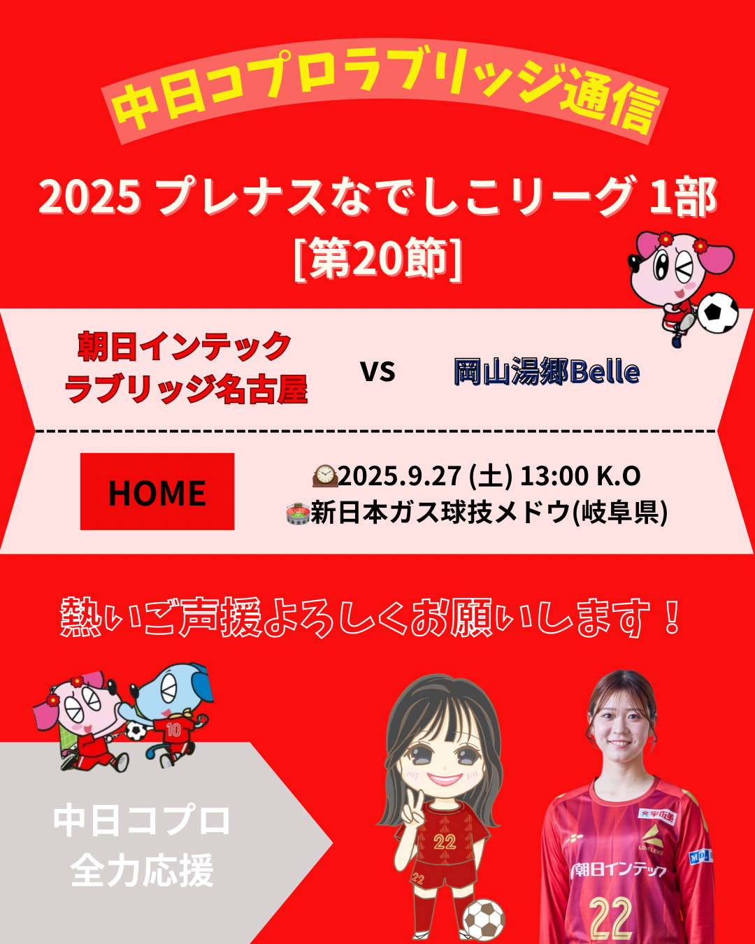 2025プレナスなでしこリーグ1部 第20節 ご案内