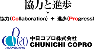 1958年(昭和33年)創業の中日クリーナー工業は40周年を機に、これまで慣れ親しんできた中日クリーナー工業(株)から中日コプロ(株)へと社名を変更いたしました。 この大きな節目を機に、企業体質の強化改善を目指してCIを導入。企業戦略の再検討、社内体制の見直しを図りました。特に業務体系では清掃を中心とした企業形態から、 清掃を含む総合メンテナンス企業へと脱皮し、リニューアル優先時代における管更生工事業務の充実。さらに社員食堂の運営管理を中心とした総合フードサービス企業への成長。 この強力な3大柱を中心に積極的に拠点展開を図り、業界のリーディングカンパニーとして真にユーザーの求める企業へと成長して行きたいと考えています。 私たちは50周年を迎えることができましたが、急激に変化する社会情勢のなかでは過去の経験を切り捨てなければならないことも数多くあります。過去50年の延長線上の”今”と、 未来からの延長線上の”今”のベストバランスを考察し、未来へ向かっての確固とした企業方針を固め、変革することへの勇気とチャレンジ精神をもって、全社員一丸となって飛躍していきます。